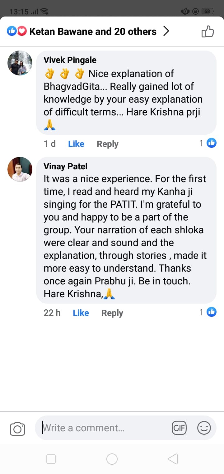 Rupesh Mahajan (Rupesh Gauranga Das) is a Graduate of Mechanical engineering, He is a Vedic educationalist, Cow-entrepreneur, Storyteller and also Yoga Teacher. During his college days, he came across the ‘Bhakti Vedanta Academy for Culture and Education’ where he was inspired to read, study and practice Gita seriously. He organizes camps, seminars and training sessions based on Gita, Mahabharata, and Ramayana for kids as well as adults. He is well-known for his talks on Gita on YouTube and Facebook. He is author of '51 Shlokas, 51 Sutras and 51 Stories.'